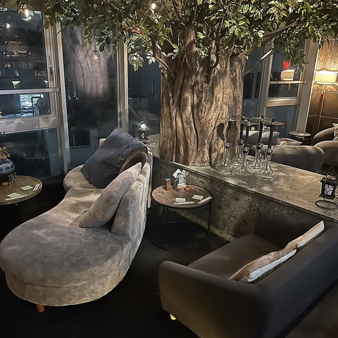 大きな木を模したインテリアが特徴的で、自然溢れる特別な空間が広がります。ふかふかのソファー席で、種類豊富なシーシャを楽しめる、おしゃれなシーシャバーです◎初めての方でも気兼ねなくお越しください。ご来店お待ちしております。