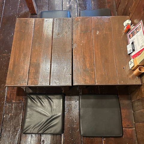 | テーブル | 4名様×4 | レトロな雰囲気漂うテーブル席は、木の温もりに包まれた落ち着いた空間。仲間内での食事や気軽な飲み会にもぴったりで、ゆったりと会話を楽しめます。どこか懐かしさを感じる佇まいが、心地よい時間を演出してくれます。 |