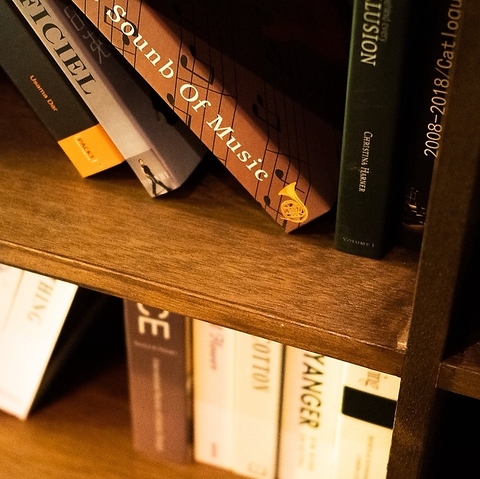 本に囲まれたような店内の意匠は、非日常感を楽しめる大人びた空間を演出。炎が揺らめく店の中の暖炉を眺めながら、思い思いに会話やお食事、シーシャなどをゆっくりとご満喫ください。