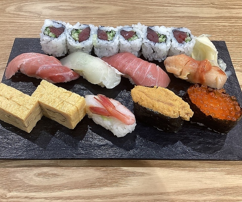 (中トロ・ハマチ・赤身・イカ・エビ・イクラ・玉子・鉄火巻)