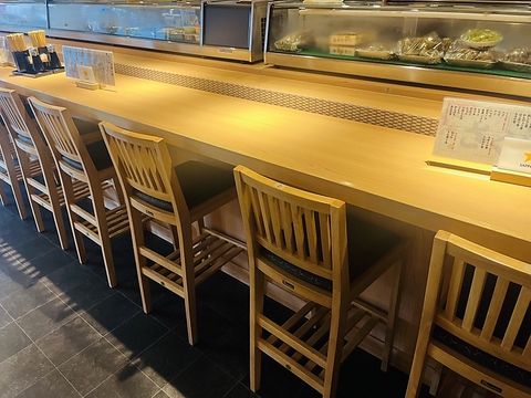 職人の技を間近に感じられるカウンター席は、ゆったりと寿司を味わうのに最適!一人利用やペアでの食事も◎