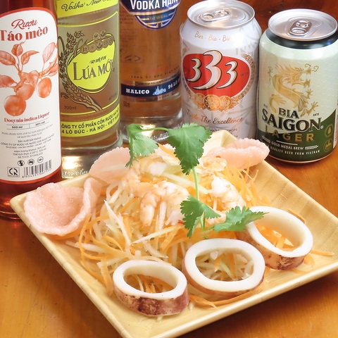 日本では手に入らない貴重なお酒を味わえます】 『333(バーバーバー)ビール』や『サイゴン』などの各種アルコールを豊富にご用意しております。日本では手に入らないベトナムのお酒もご用意ございます。ぜひ一度お試しください♪