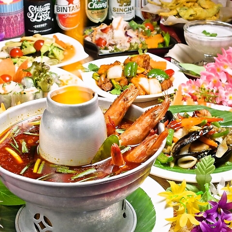 カラフルで異国情緒漂う内装はリゾート気分のお洒落空間。タイ出身のスタッフが温かくおもてなしします♪
