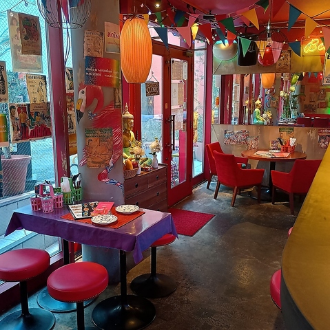 カラフルな調度品が目を惹く店内。さながら本場タイのリゾート地にいるような非日常感が魅力です。気軽なランチにはもちろん、デートや女子会にもおすすめ。