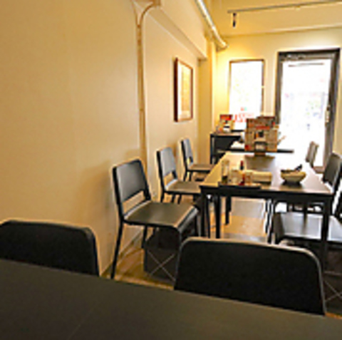 明るい店内に黒基調のテーブルをご用意♪2名掛けからご利用人数にあわせてお席をご用意させて頂きます。