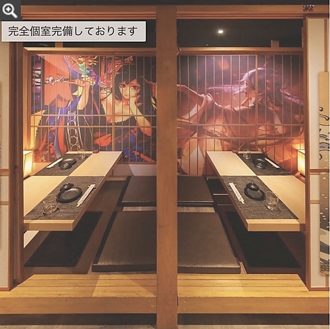 扉付きの全席完全個室のお席は落ち着いた雰囲気でお食事をお楽しみいただけます。