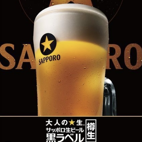 | ビール ※+500円で生ビール飲み放題に変更できます | 【樽生】サッポロ生ビール黒ラベル |