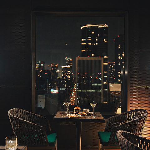 大阪の夜景が一望できるバーラウンジ「ルーフトップバー」はシックなカラーで統一したお洒落な雰囲気。椅子は座面が深く背中や肩をしっかりと預けられるのでゆったりとお寛ぎいただけます。仕事帰りや恋人とのデートなどに最適◎雰囲気抜群のとっておきの大人の空間で、上質な大阪の夜をお楽しみくださいませ。