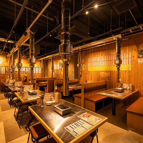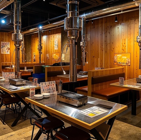 お洒落な排煙ダクトが雰囲気抜群の店内◎テーブルごとに設置されているので、煙を気にせず焼肉をお楽しみただけます♪会社帰りにお仲間と、お1人様でも、デートでも◎美味しい焼肉を是非お楽しみください!