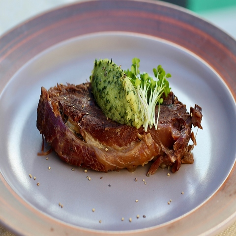 じっくりと煮込んだ牛ホホ肉は、箸でほどけるほど柔らかく。旨味の深いソースに、大葉の香りを効かせたサルサヴェルデが爽やかな余韻を添えます。重厚さの中に軽やかさが広がる、和と洋の調和を愉しむ一皿。