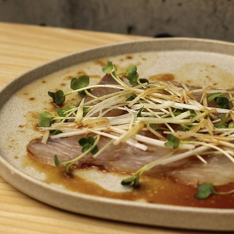 旬の鮮魚を引き、香り豊かな土佐酢のジュレで包み込む。まろやかな酸味が魚の旨味を引き立て、口の中でほどけるように広がります。