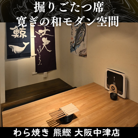 8名様から最大12名様までご利用いただける完全個室は、ゆとりある掘りごたつ式。和の趣にモダンな要素を取り入れた空間は、ご接待やご宴会、特別なお集まりにも最適です。足を伸ばしてリラックスできる居心地の良さが魅力です。洗練された和モダンな完全個室で、上質なひとときをお過ごしください。