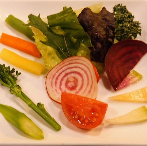 おぎしげ農園さんの、ガバレ農場さん、さいたまヨーロッパ野菜研究会さん等のお野菜を使ったこだわりのサラダです.。お野菜の内容は季節や天候など入荷の状況により変わります。セットのサラダも同じ内容です。当店に来られたら必ず食べてくださいね。テイクアウトもできます。Colorful salad using organic vegetables from Konosu (