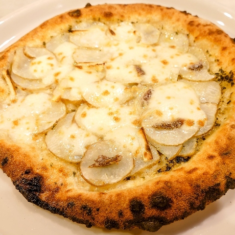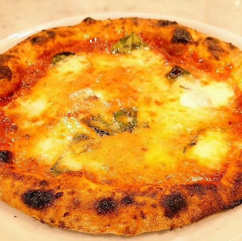 生地はナポリピッツァ協会認定の北海道産小麦を24時間熟成させた手ごねの生地を丁寧に仕込んでます。トマトソースは薪焼した香味野菜をイタリア産のホールトマトを混ぜて軽く煮込んだソースです。チーズはイタリア産のモッツァレラチーズ100%使用The dough is carefully kneaded by hand using Hokkaido wheat certified by the Neapolitan P