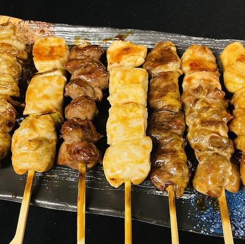 火炎鳥の自慢の串を盛り合せでご提供します!炭火で焼くので外側はパリッと、中はふんわりもちもちと◎職人の技が光る、香りまで美味しい焼き鳥をお愉しみください。