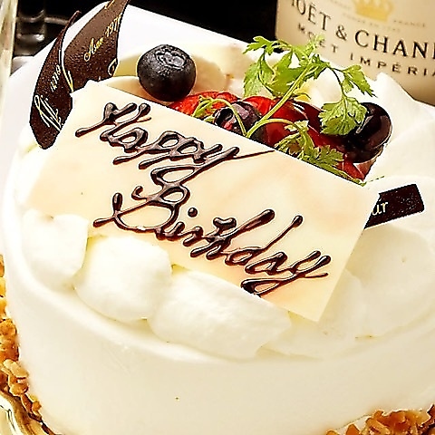 誕生日や歓迎会、送迎会利用にもぴったり!メッセージプレートもご用意可能です。事前にメッセージ内容をご連絡ください♪お出しするタイミングなどご要望がございましたら、お気軽にご相談ください。素敵な時間をお過ごしいただけるよう、スタッフ一同、心を込めておもてなしいたします。