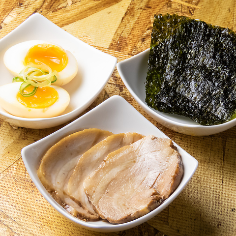 トッピングは15種類!自分好みのトッピングをお楽しみいただけます◎サクッと食べられるおつまみや、ラーメンにうれしいライス・替え玉のサリ麺もご注文もできるほか、おつまみにトッピングの単品注文も可能です!