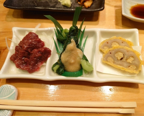 二切れから三切れの盛り合わせです。二点盛り、三点盛り、四点盛りからお選び頂けます。