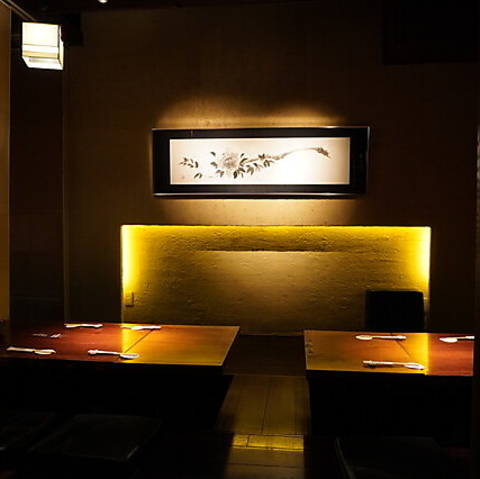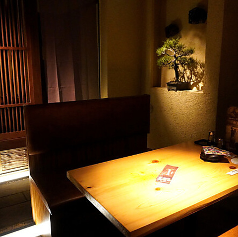 木の温もりが漂い、落ち着いた照明が演出する上質な空間です。3名様から利用可能なテーブル席です。4名様でもご利用可!周囲を気にせずゆったりと会話を楽しめる、少人数での飲み会や女子会、大切な方との会食に最適です。都会の喧騒を忘れ、自慢の料理と共に心地よいひとときを心ゆくまでご堪能ください!ぜひご予約をお待ちしております!