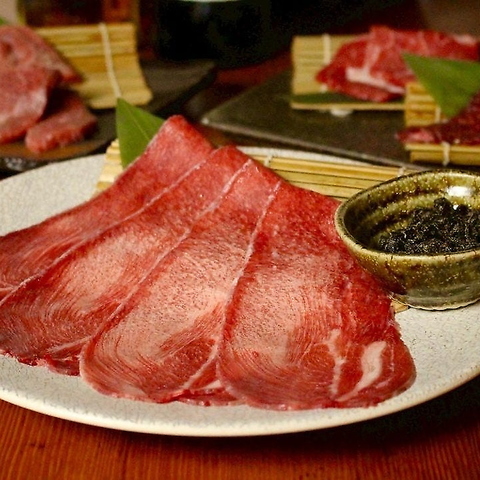 タン元からタン先までを一度に楽しめる、当店名物です。塩昆布を巻いて、ぜひご堪能ください。