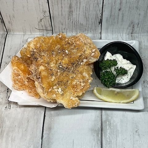2枚:280円(税込)/1枚:200円(税込) 胸肉を薄くのばしてカリっと揚げたらメガうま食感!タルタルとレモンで♪