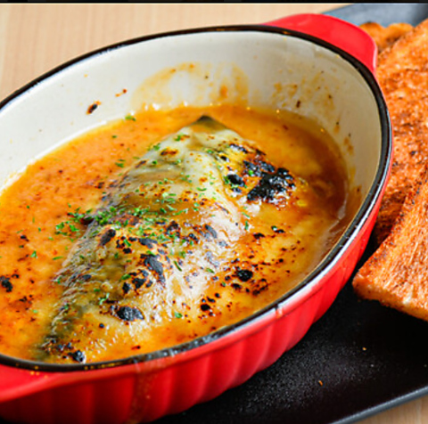 サバのアヒージョ、サバのポテトサラダなど、ここでしか食べられない一品も多数。写真はサバ味噌グラタン♪