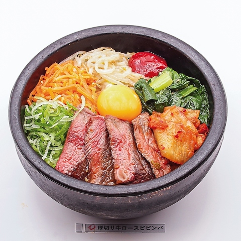 肉の旨さが引き立つビビンバは、想像以上の美味しさ!厚切りの肉が焼かれる音が食欲をそそります。色とりどりの野菜が彩りを添え、見た目でも楽しませてくれます◎