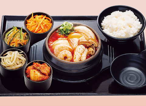 【海鮮スンドゥブ定食】海の幸を楽しむアツアツピリ辛鍋定食