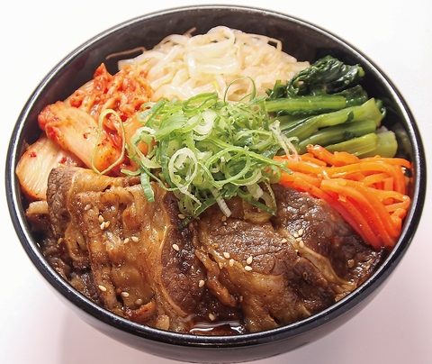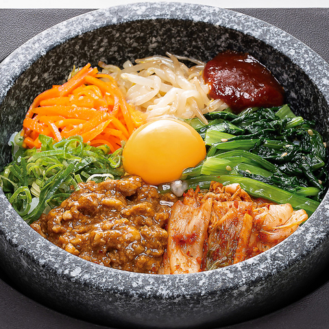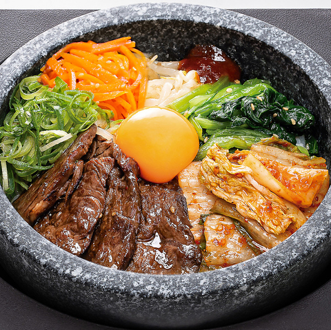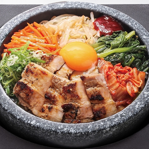 肉の旨さが引き立つビビンバは、想像以上の美味しさ!厚切りの肉が焼かれる音が食欲をそそります。色とりどりの野菜が彩りを添え、見た目でも楽しませてくれます◎