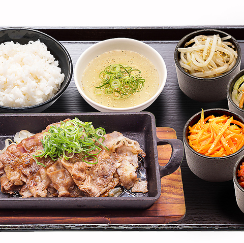 しっかりとした肉がたっぷり載った定食。焼き上がりの肉は、ジューシーさが際立ちます♪
