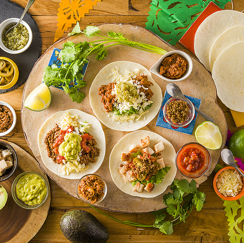 10種類の具材をお好みでトルティーヤに乗せて楽しむメキシカンタコスが登場!みんなでワイワイ楽しもう★