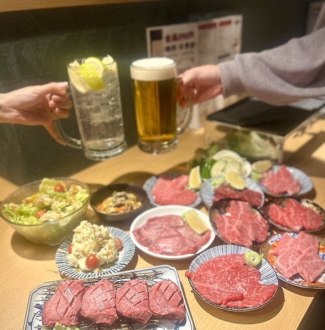 店舗側で最初のお肉をお焼きします。接待時なども焼く手間なし!リピーター率120%☆