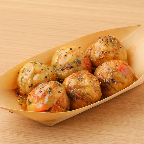 お仕事帰りや2軒目でのご来店の際はぜひご注文ください♪自家製たこ焼きは、改良を重ねた生地を、店内でじっくり焼き上げることにより、外はカリッと中はもっちりとした食感に仕上げております♪