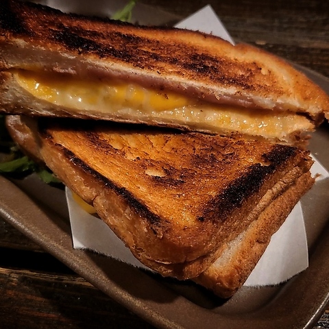 『プラダを着た悪魔』より/アンディの恋人ネイトが作ってくれたホット・サンド。モッツァレラにレッドチェダー、ブルーチーズ、プロシュートを挟んでバターでこんがり焼き上げました。ポテトor白身魚のフライセット→1200円ミニ野菜スティックセット→1000円