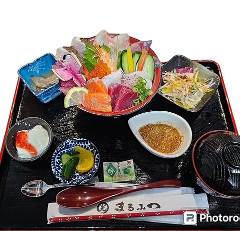 創業65年。毎日市場まで足を運び目利きで仕入れる海鮮類は絶品!まずは目で見て楽しめる、華やかな丼ぶりでまるみつの美味しさを心ゆくまでご堪能くださいませ。