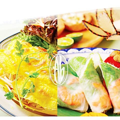 【ベトナム料理について】アジアとヨーロッパを代表するグルメ大国と言えば、中国とフランスですが、かつて歴史の悪戯がもたらした両国食文化の 出会いと融合は、民族の狭間に新しい料理を発芽させました。以来1世紀以上に渡る激動の時代が料理法を洗練し味を昇華させて今日の格調ある ベトナム料理を確立しました。