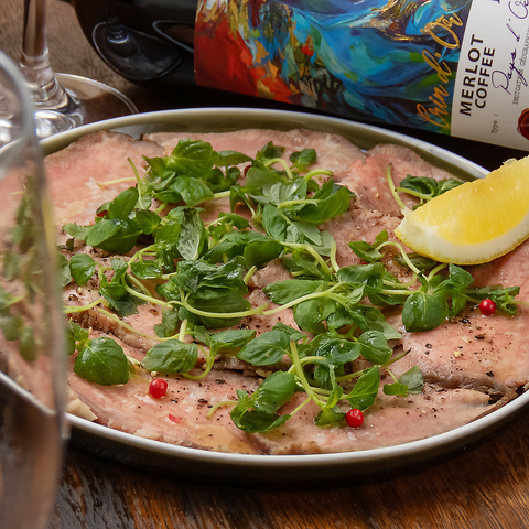 鮮度抜群の牛タンを極限まで薄くスライスし、特製のレモンソースで仕上げました。しっとりとした舌触りと、噛むほどに溢れる肉の甘みが特徴。シャキシャキの香味野菜が食感にアクセントを加えます。キリッと冷えた白ワインとの相性は抜群で、前菜として注文すれば宴の始まりを華やかに彩ります。