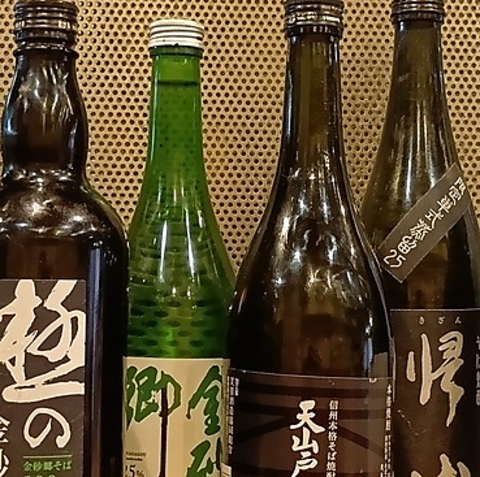 蕎麦屋だからこその充実の蕎麦焼酎。その他時期に合わせた様々なお酒を種類豊富に取り揃えております。