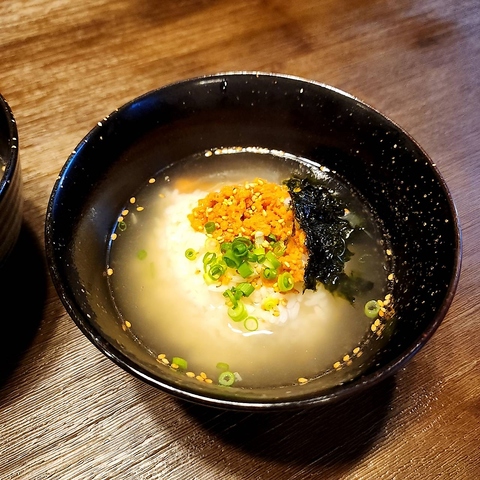 濃厚な鶏白湯のスープと、もちもちの水餃子が楽しめる【くいもん酒場 わはは】一番人気のメニューです。シメには極太の「ちゃんぽん麺」か「おじや」のどちらか好きな方を選べます。