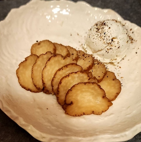 燻製の半熟卵を使った当店自慢のポテトサラダ!お酒との相性も抜群!召し上がる前に半熟卵を割って、混ぜて頂き、最後は粒マスタードでぴりっとさせて是非お召し上がりください♪