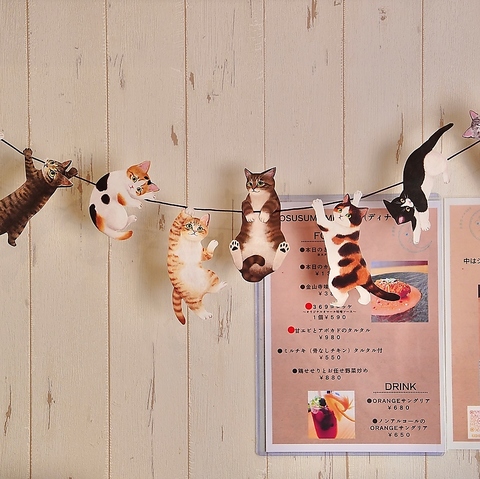季節の装飾品や、お客様にいただいた絵画なども飾らせていただいてます。ネコ好きなオーナー選りすぐりの装飾品も見どころです◎