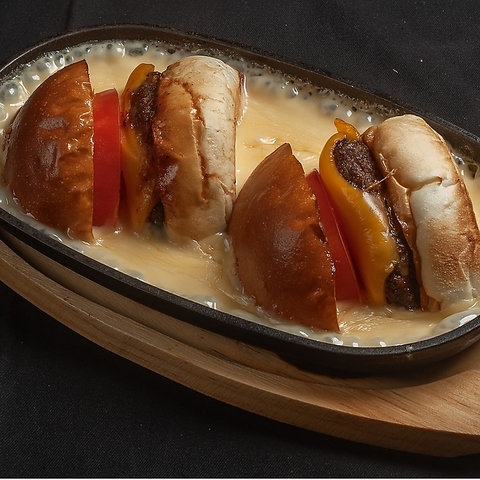 ダブル1518円(税込)/熱々のチーズソースにハンバーガーをダイブ!!チーズ好きの方におすすめ