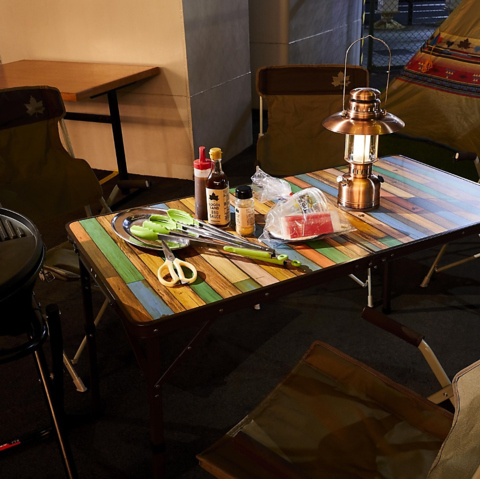 アウトドアブランドLOGOSとコラボしている当店では、お気軽にアウトドア体験が可能!!
