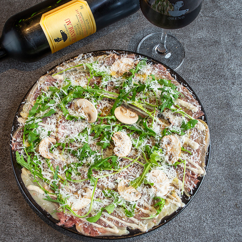 俺のイタリアンオープンからの人気NO.1のピッツァです。トリュフと相性が良い半熟卵と、ポルチーニのソースが絡み合って絶妙の味わいです!5感で楽しんで頂ける最幸のピッツァ。是非ご賞味下さい。