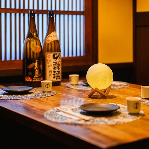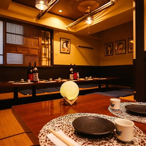 【デートや女子会に人気の落ち着いた個室】ゆったり過ごせる落ち着いた個室空間は、デートや女子会に人気。木の温もりを感じる柔らかな照明の中で、名物鶏皮串や創作和食を楽しめます。少人数でのご利用に最適なプライベート空間です。