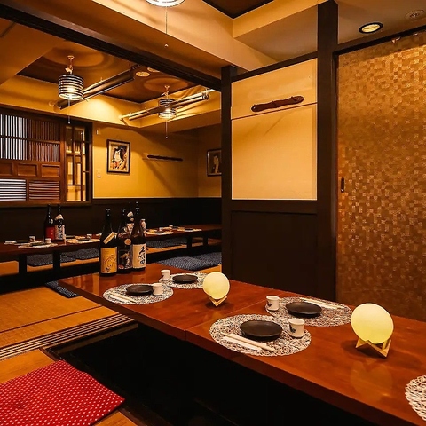 | 掘りごたつ個室 | 14名様×1 | 【掘りごたつ個室:最大14名様】団体利用にぜひ◎大人数での宴会も対応可能な広々個室。襖を外して最大14名様までご利用いただけます。さらに、最大12名様まで対応可能な掘りごたつ個室もございます。人数やご希望に応じたお席のご提案も可能ですので、どうぞお気軽にご相談ください。 |