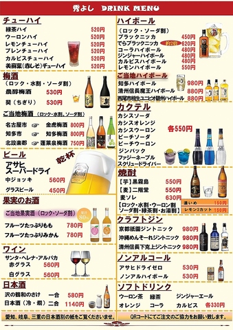 名古屋名物居酒屋 秀よし ドリンク 2026/04/05 更新