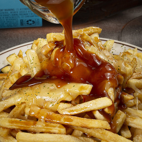 揚げたてポテトに、湯気とともにとろける濃厚チーズと特製グレイビーソースをたっぷり絡めました。コク深くまろやかな味わいが贅沢な一皿です。