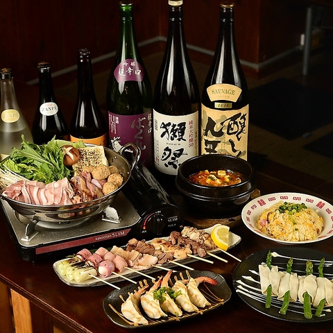 前日までの完全予約制で嬉しい3時間飲み放題付きのコースが登場!コース内容は、餃子が全部で20種類の他に串、おつまみ、揚げ物、炒め物、サラダ、米・麺、デザートなどバラエティに富んだメニューをご用意☆