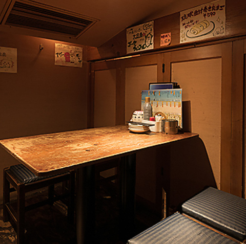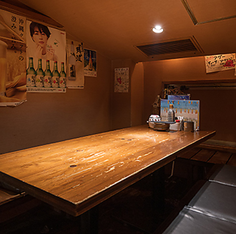 木製のテーブルと丸椅子が特徴の団体様向けお席。温かみのある木の内装が落ち着いた雰囲気を演出してくれます。ゆったりとお話を楽しめるようなテーブルの設計になっているため、お友達や会社の飲み会などでも最適。テーブルの配置も自由にできるため、人数様に合わせてご案内します!